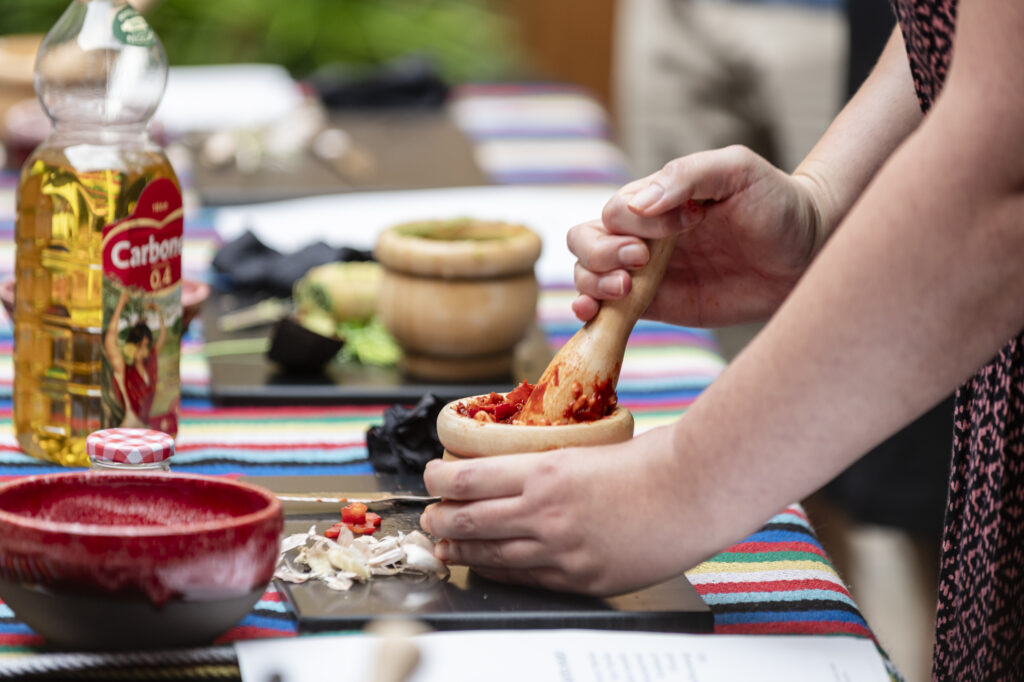 En este taller Flora y Chacha nos enseñaron a hacer tres tipos de mojos a su manera: el mojo rojo, el de azafrán y el mojo verde. Todos para chuparse los dedos.
